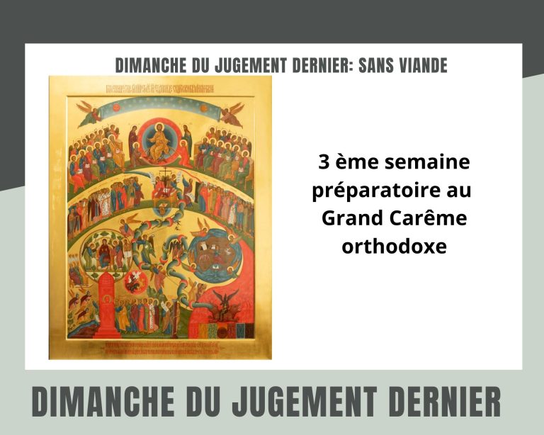 Dimanche du Jugement dernier – Semaine de la viande. L’Église orthodoxe définit l’avant-dernière semaine avant le Grand Carême de l’Église orthodoxe selon deux noms le dimanche du jugement dernier ou … Lire la suite de Dimanche du Jugement dernier